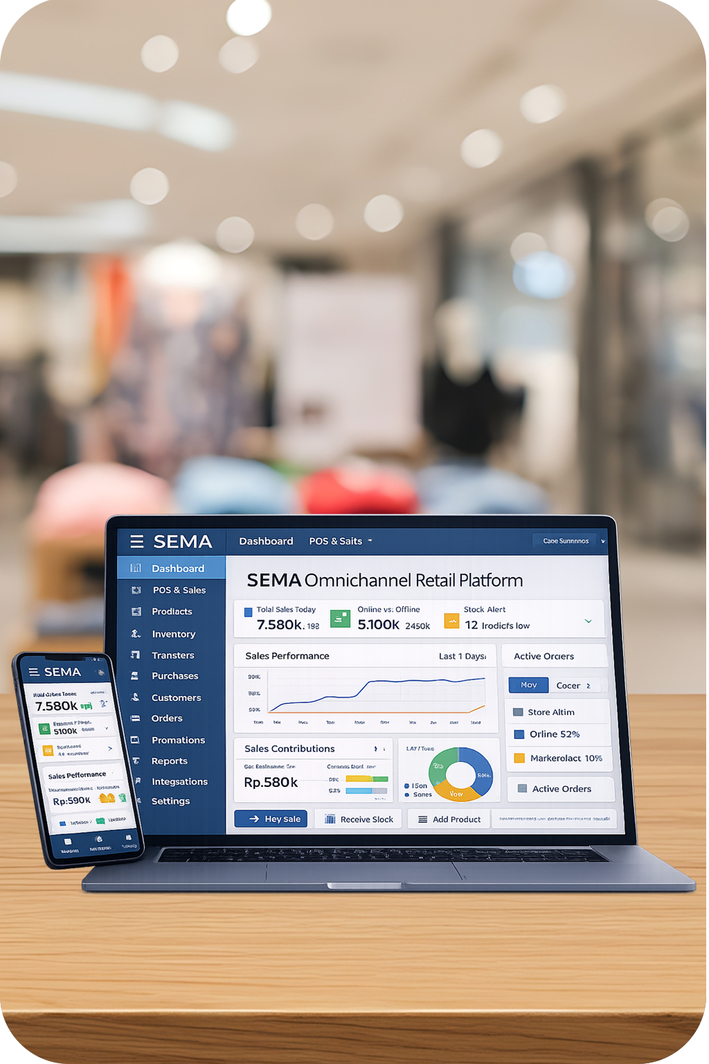 Dengan Sema Omnichannel Retail Platform, bisnis tidak perlu lagi menggunakan banyak aplikasi yang tidak saling terhubung. Semua data penjualan, stok, dan laporan berada dalam satu sistem, sehingga: Operasional lebih rapi, Kesalahan data berkurang, Keputusan bisnis bisa diambil lebih cepat dan tepat.